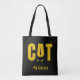 Den här snyggten med svart tote-väska har en djärv och öga-fångstutformning med ord 'CAT' på en framträdande plats i stort, guldfärgat brev. "A" i brev är kreativt stiliserat för att likna en kattens ansikte, komplett med piercing ögon under den. Under "CAT" i ord är namn "Ariana" elegant skriven med ett kursivt typsnitt, även i guld. "Ariana" i namn är helt och hållet anpassade, och skapar denna unika perfekt i säcken för kattälskare som vill lägga till en personlig röra. Det är ett modernt och funktionellt tillbehör för vardaglig använda.