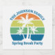 Den tropiska stranden av coola personlig, party champagne i flaska, har tre silhuggna handflatan träd mot en orange och blå himmel accentuerade med gult och grönt vid kusten. Anpassa till din familj resa namn för din kustutvandring i påsklov eller sommar- eller havssemester.