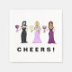 Tre vin-kvinnor höjer sina glasögon för att skicka bedragare och lycklig önskemål till mottagaren. Anpassa text med din egen anpassningsbar hälsning. Design av Victoria Lynn Hall.
