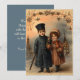 Detta nyårskort har en viktoriansk- vintage illustration av en ung pojke och flicka iklädda kappor och hattar för en vinters nyårsaftonfirande. Personalisera genom att anpassa meddelandet på baksidan och/eller lägga till ditt/dina namn.