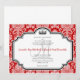 Anpassade vita Damaskus röda svarta bröllopsinbjudningar. Dessa röda Damaskus bröllopsinbjudningar med en välvd ram och malltext för att du ska kunna anpassa. Du kan ändra teckensnittet för texten genom att klicka på "Anpassa" och använda anpassningsverktygen till höger om inbjudningsbilden. Om du behöver hjälp kan du klicka på "Kontakt" och mejla en förfrågan.