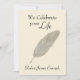 Fjäder på Blek Sand för ett Life Firande Detta kort i varma och elegant sepia-ton är ett enkelt sätt att låta vänner och familj veta om en sammankomst för att fira ett liv - oavsett om det är en traditionell begravning eller väckning, en levande begravning eller en minnesceremoni. Har en enkel ludddesign på blekens sandbotten, med anpassade text.