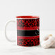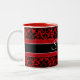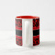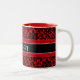 Härlig röd damastast mönstermugg med anpassadenamncalligraphy. Bakgrundsfärgen är fullständigt anpassadet i skräddarsy som den delar upp.