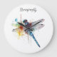 vattenfärgsmålning av en vacker, färglös drakfluga som hålls på en skugga på en vit bakgrund