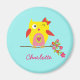 Personlig söt liten illustration av Uggla sitta på gren med blommor av grönt löv och söt rosa med blå turkobakgrund. Cute, Coola och praktisk design för flickor. Anpassade. Utformning för Tillfälle. Fler designer och matchande artiklar finns tillgängliga i min butik. - http://www.zazzle.com/designbylang* - Tack för besöket!