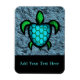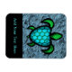 Digital målning av en havssköldpadda med en blå, oktagisk mönstrad snäcka. Havssköldpaddor från wingedturtle.com. Flexibel magnet med anpassadets textområde - lägg till ditt eget meddelande.