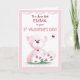 Fira med en söt liten flicka på sin första Alla hjärtans dag! Den här lilla nallen sänder varma och fega hakar och hjärtan. Anpassa med namn för ett personlig 1:a Alla hjärtans dag-kort.