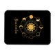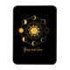 Bilden i mitten av sol omges av en cirkel med måne-faser i guld på svart bakgrund. Lägg till ditt namn, företag, varumärke eller annat speciellt meddelande för att anpassa modern skripttext i guld färgad.