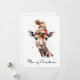 Vattenfärgning av en giraffe med en vinterhatt i sticka i jul stil