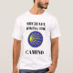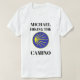 Anpassningsbar Camino Pilgrimage T-Shirt. Byt namn och gör den här skjortan unik. Om du färdas på en pilgrimsfärd är den här produkten med blå och gult scallop perfekten som komplement till din vandringsutrustning.