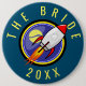 Logotyp för frakt av Sci-fi-retrorakettyp. Text är gult på dammig blå och är anpassade. Gör en för varje medlem i bröllopsfesten eller skapa en minnesvärd och varaktig partiförmån.