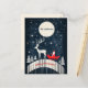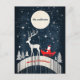 Julvykortet visar en söt illustration av att en älg drar en sledge som Jultomten färdas på.