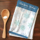 Ring i julhelgen med det här anpassadet kökstmedduken som har en känslig snöflinga mönster i blå och turkosa nyans. Anpassadets text, "Jul Önskemål och snöflake Kisses", gör den här handduken till ett perfekt till din helgdag-dekoration. Anpassa designen med din egen text eller namn för att skapa en unik gåva till människor som kärlek för att laga mat, underhålla eller för att få personlig kontakt med sitt firande.