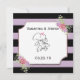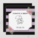 Anpassadet på det här Spara datumkortet innehåller färg längst fram, färg längst bak, i bakgrunden, på namn i brud & groom och framtida datum för bröllop.