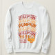 Thanksgiving PUMPKIN MAMMA sweatshirt med ANPASSADE TEXT, som visar ord PUMPKIN i lätt båge höst färger. Det finns en bild av tre söta pumpor på högerna grund och söta, fega pumpor. Vid grund står det i texten IN ALL SAK GE THANKS, som du kan PERSONALISERA med dina barns namn. En idealisk automatisk svettskjorta till bäran när man gungar ner till mysiga nätter framför elden.