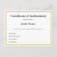 Detta är ett anpassade Autentiseringskort som artister kan använda med originalteckningar, t.ex. målningar, teckning, skulpturer osv. Lägg till ditt namn på kortet och markera projektionskortet lagrar för att enkelt kunna skriva på med en penna eller markör. Jag är målare och använda och ett liknande fyllnadsbart stil för mina egna äkthetsintyg, och jag trodde att detta kunde vara till hjälp även för andra konstnärer. Tack för tittar!