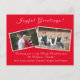 Anpassadets julkort har två av dina foton mot en vacker, ljusröd bakgrund. Foton skisseras med en vit gräns. Ditt personliga meddelande visas precis under fotot, tillsammans med utrymme för namn av familjemedlemmar.