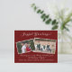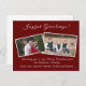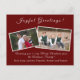 Anpassadets julkortsdesign har två av dina foton mot en vacker burgundisk bakgrund. Foton skisseras med en vit gräns. Ditt personliga meddelande visas precis under fotot, tillsammans med utrymme för namn av familjemedlemmar.