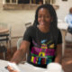 Dekorativ byggnad på gymnasiet omgiven av konst- och musiksymboler. Exklusiv Arts High School-originaldesign.