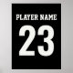 Gratulerar till din favoritspelare med den här slående designen för att se ut som baksidan av en sportjersey. Anpassa med för- eller efternamn och nummer. Perfekt för idrottsentusiaster, denna poster är idealisk för barn och tonåring rum, spelrum eller människogrottor. Den fetstilta kontrasten mellan svart och vitt säkerställer att den framträder som påstående biet. Lägg till i din samling om du vill ha ett litet sportiskt lugn. Färg kan ändras för att koordinera med team eller dekor.