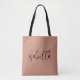 En chic modern lerfärgad väska med svart namn och rött hjärta som är perfekt för ett brudtjänstförslag. Era brudtjänster kan fylla sin tote med nödvändigheter för möhippartresor eller för det som behövs på bröllopsdagens morgon.