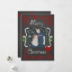 En kritbordsbakgrund med vackra scrollsar och stjärnor med rött och grönt och vit text som lyder "God jul" på framsidan och "Kan alla dina dagar vara glada och ljusa" på baksidan. Det här vackra, skräddarsydda julfotokortet har flera stjärndekorationer och en fågel i en kapslad design och områden som du enkelt kan lägga till namn, det aktuella året och foto!