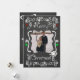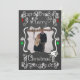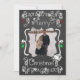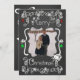 En ritbordsbakgrund med vackra scrollsar, stjärnor och dekorationer av vit, röd och grönt och vit text som lyder "God jul" på framsidan och "Kan alla dina dagar vara glada och ljusa" på baksidan. Det här vackra, skräddarsydda julfotokortet har flera stjärndekorationer och en fågel i en kapslad design och områden som du enkelt kan lägga till namn, det aktuella året och foto!