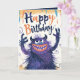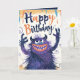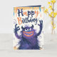 Det här är ett födelsedagskort med en söt blå och lila monsterillustration för monsterälskare. Inuti kortet kan du anpassa det med ett barns foto, namn och ålder.