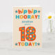 Ett lysande och glatt födelsedagskort som du kan använda för att anpassa dig på framsidan, med färgstarka bokstäver på en krämbakgrund. Hälsning är, "höftskepp HOORAY". (Du kan lägga till namn), du är 18 år gammal i DAY!" i ett fet, färgstarkt skript. Den röda siffran 18 är stor i extra och har stora prickar i gyllene gulter och en grönblå blått. Det inre meddelandet är bara ett förslag, och du kan enkelt ändra det eller ta bort det om du föredrar något annat eller inget tryckt inre meddelande alls.