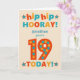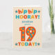 Ett lysande och glatt födelsedagskort som du kan använda för att anpassa dig på framsidan, med färgstarka bokstäver på en krämbakgrund. Hälsning är, "höftskepp HOORAY". (Du kan lägga till namn), du är 19 år gammal i DAG!" i ett fet, färgstarkt skript. Den röda siffran 19 är stor i extra och har stora prickar i gyllene gulter och en grönblå blått. Det inre meddelandet är bara ett förslag, och du kan enkelt ändra det eller ta bort det om du föredrar något annat eller inget tryckt inre meddelande alls.