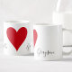 Skapa din personlig rödhjärt kärlek mugg med egna namn. När de hålls ihop blir roligt mugg ett hjärta, så de är perfekt gåvor till Alla hjärtans dag eller årsdagar. Färg i hjärtat kan anpassas efter dina önskemål.