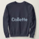 Blåa kvinnors grundläggande sötskjorta... Det här är en blå baskerskjorta. Du kan modig utomhusaktivitet i bekvämligheten hos den här klassiska tröjan. Den är både plussad och hållbar i sin konstruktion - en riktig häftklammer för varje vargfall som kommer att hålla. Välj en design från Zazzles marknadsplats eller anpassa den så att den blir din egen! Den blå tröjan är skräddarsydd med en kvinnas namn, Collette. Namn är en glanskblå färg i Chambray Comfort Färg. Namn Collette är på framsidan och baksidan av tröjan. Du kan ersätta namn genom att klicka på länken Anpassa. Sötskjortan passar storlekt. Sötskjortan är en blandning av bomull och polyester. Sötskjortan har fällt in sleever och dubbla-nål sytt halsband, armhål och grund-band för långsiktig hållbarhet. Strukturen är importerat. Skötselanvisningarna är att maskin tvättar kall och torr torr låga tumörer.