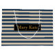 Det här "Anpassat namn Blue/Vanille Rand Large Gift Bag" har blått och vanilla rand och kan vara personlig med namn på mottagaren. Gör dina presenter ännu mer minnesvärda med den här snyggten och anpassadets presentväska. Beställ i dag!