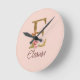 Anpassat namn Bokstav E Guld Folie Rosafärgade ros Rund Klocka