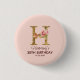 Anpassat namn bokstav H Guld Rosa Rosor Knapp