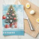 Anpassat namn Cute Penguin Snowy Blue jul Kökshandduk