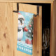 Skapa en unik anpassningsbar julhandduk som har en söt penguin som dekorerar en Julgran-designad på en snöblå bakgrund med elegant snöflingor. Använda mallen för att skriva din familj namn eller ett ordspråk för julhelgens unika köksdekor.