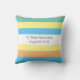 Lönsam och elegant "Lycklig Pension" kudde med namn på den pensionerade arbetstagaren på ryggen, tillsammans med månaden och året för deras pension. Kudden har en elegant av färg-banden i fyra färger: ljusa gulter, orange, teal och himmel blå - och vita. På framsidan finns det, förutom meddelandet "Lycklig Pension", flera andra texter i anpassadet: "Familj och vänner" + "Hobbieser" + "Resor" + "Pension utan spänning" + "Me time" + "Tagning av bron" + "No chef"