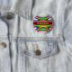 Den här kommandoknappen har en flerfärgad mönster av ljust psykodeliskt färg som omger en central äggformad struktur. Det liknar en fantasi om ett främmande rymdskepp-redo för att borra en dagling. Det finns en röd remsa med grönt på den. Texten är anpassade så att du kan ersätta den med ditt namn eller annan text. Knappen är underbar för delegater vid en konferens, medlemmar i en bröllopsfest eller företag och deras anställda.