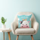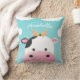Cute dekorativ kudde för daghemmet med en gult fjäril sitta vid huvudet på en vit och svart ko. Anpassa med baby namn i ett vitt skript. Baksidan har chic kol och vitt rand.