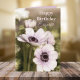 Fotografiet Anemone Poppy lila blommor i en mjuk vintage med anpassadet namn och text.