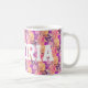 Funky, roligt och feminin! Anpassa den här blommigten mugg i nyck, gulter och lila med alla namn!