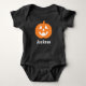 Halloween-skjortan har en spooky-söt jack o lantern-pumpa i orange och anpassningsbar vit text som kan vara personlig med ditt barns namn.