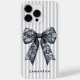 Modern Coquette Grått Rand Girly Bow Custom Name Fodral-Mate iphone case har en delikat mörk grått blommigt-båge i toile de Jouy stil, inställt mot mjukt grått och vitt lodrät rand. Det rena moderna teckensnittet gör att personligen trycks vid för ett giftigt utseende men elegant. Perfekt för coquette stil älskare eller någon som lägger märke till chic, feminin design med en antydan av vintage. Gör den till din egen med enkel anpassning. Behöver du en anpassningsbar? Skicka bara ett meddelande, vi är här för att hjälpa till. Observera vänligen att svarstiderna kan variera något beroende på tidsskillnaden.