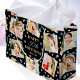Skapa en snyggt fotokollage-presentsäck med sex favoritfoton! Anpassa mallen med mottagarens namn och födelsedagsålder. En elegant som är utformad med ett mönster som täcker alla konfetti, stjärnor och fyrkantiga fotografier, perfekt för familj och vänner. Tryckt färg: blått, svart, vitt och faux guld inslag.