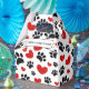 Teckning av hund och röda hjärtan i många storlekar. Effekten Faux glitter används på bilden. Anpassningsbar-fester. Underbar för personlig party-dekoration. Redigera namn om du vill anpassa. En idé till folk som kärlek hundar.