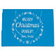 Gör julen ännu mer magisk med en egen namnpresentsäck! Denna mall "Kärlek Santa" är personlig med mottagarens namn och hälsning God jul. Den har ett dekorativt gräns med snöflingor, holly, lager och stjärnor, tillsammans med retrotypografi. En enkel och snyggt helgdag som är perfektens för barn, familj och vänner! Samma design upprepas på båda sidor och är tillgänglig med en projektionsyta eller en glansig avsluta. Tryckt färg: blått och vitt.
