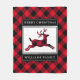 Den röda och svarta buffeltvätten som din familj namn och hälsning "God jul" har accentuerat är en unik gåva till julhelgen. Designad av konstnärer © Tim Coffey och Susan Coffey.