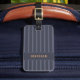 Anpassad namntagg för modernt blått och Grått-stripe. Elegantens utformning kan vara personlig med ditt namn och adress.