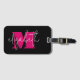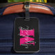 Skapa en anpassningsbar bagagetapp som är accentuerad med ditt anpassningsbar monogram och namn. Den här feminina märkrn har en inledande shock rosa monogram och ditt första namn i vitt på en svart bakgrund på framsidan och ställe för att föra in vårt affärskort på baksidan. MATCHING-objekt i vår butik.